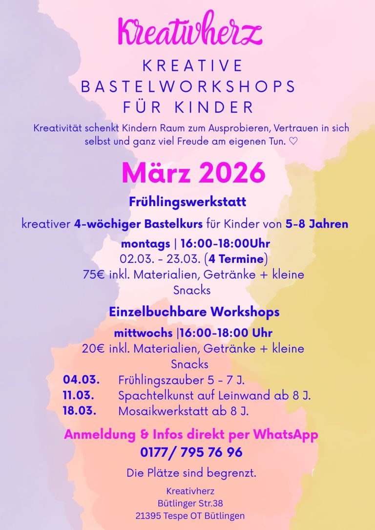 Ab sofort plane ich Workshops für Erwachsene ganz individuell - genau dann, wenn es für euch passt.